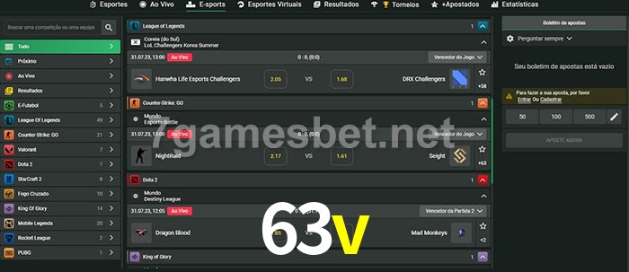 O 63v oferece uma grande seleção de opções de apostas em e-sports com probabilidades competitivas